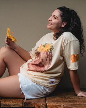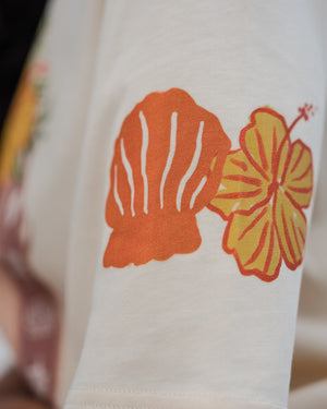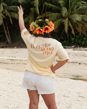 Our ‘Flower Eis Happy Days’ Tee is a beautiful graphic tee representing the flower crowns (eis, leis) of the Pacific, a beautiful adornment for any occasion. This vibrant t-shirt design captures the essence of the island girl's life and the happiness of making and adorning a beautiful fresh handmade Ei Katu. Our t-shirts are oversized so nice and loose for that stylish look and are made from quality 100% breathable cotton. This print is unique and designed by us.