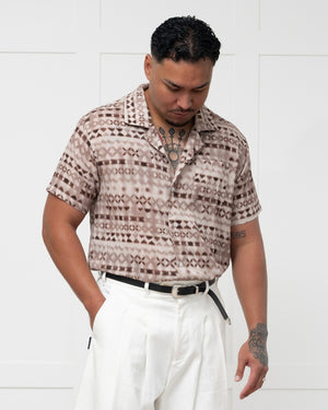 Our new Tribal print features small Polynesian tribal motifs brought to life in a soft watercolour style, creating a dynamic yet refined pattern. Bold and versatile, this print combines the strength of traditional Pacific designs with a modern, artistic twist, making it perfect for statement pieces that celebrate island heritage with contemporary style.