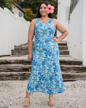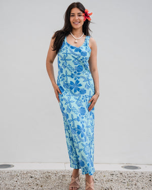 Island Paradise is a unique blend of shells, floral and Polynesian motifs that have us dreaming of sunny days by the beach or sipping cocktails poolside. This is the perfect island-style event wear print. Made from a super comfortable, soft flowing viscose fabric. Bring a touch of  tropical vibes to your wardrobe!