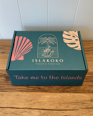 This summer's must-have sarong / pareu! Crafted from soft, flowing viscose and adorned with a beautiful Islakoko print showcasing large hibiscus flowers, shells, and a stunning Pacific floral border with the Islakoko logo. Imagine strolling by the lagoonor lounging by the pool in this stunner.