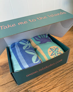 This gift box includes the two all-new colourways Floral Reef Mermaid & Floral Reef Lagoon.