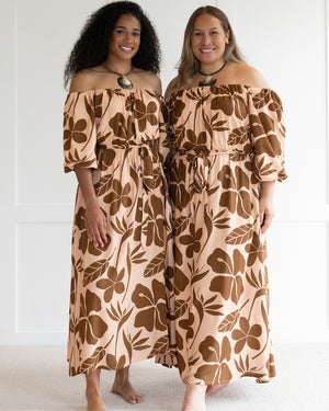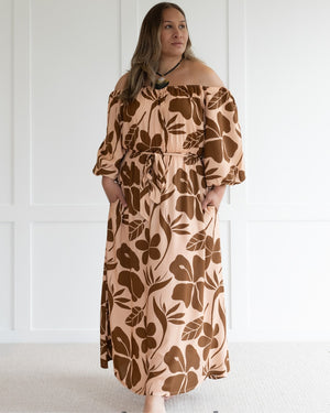 Your new WOW Island Dress is here! The Zendaya dress is a showstopper with its beautiful off or on-shoulder style featuring puff sleeves to below the elbow and a belt to cinch in the waist. Flowing 100% premium fabric that goes to a midi length. Pair with heels or chunky sandals. This dress also has pockets.